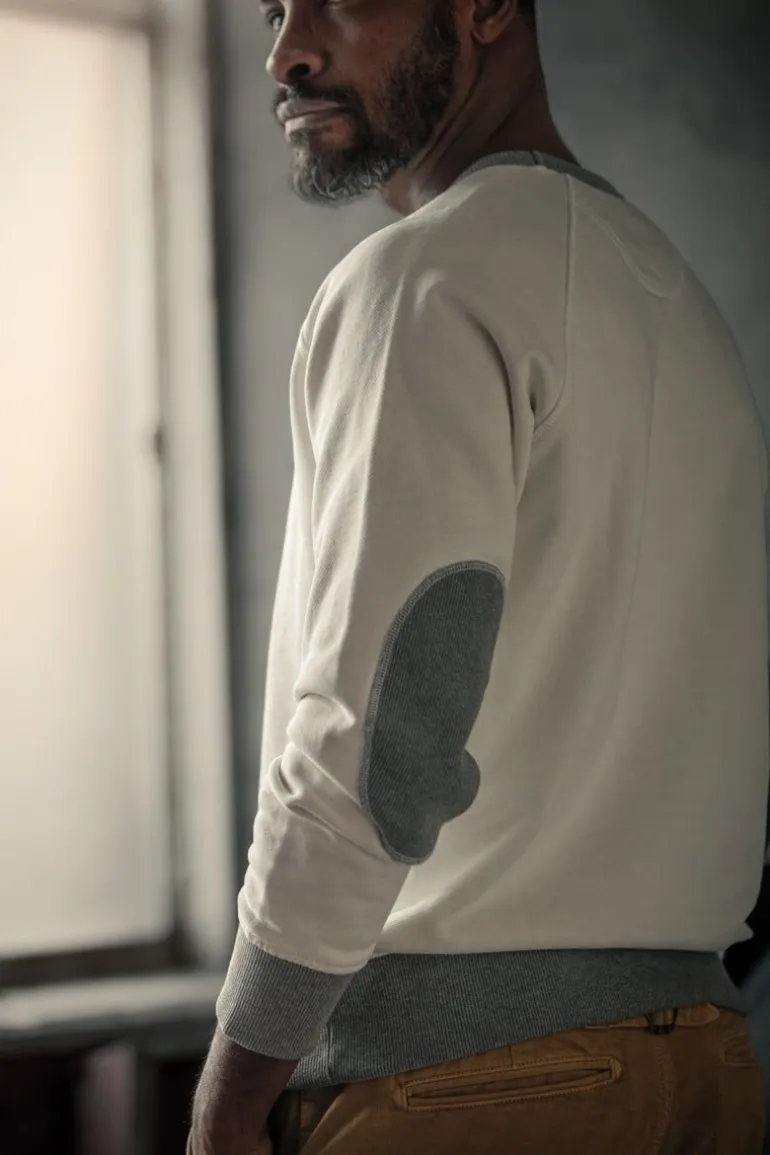 Weighing In At 430Gsm, The Stone White Sweatshirt Strikes The Perfect Balance Between Substance And Style. The Contrasting Grey Cuffs And V-Insert At The Neck Seam Add A Touch Of Classic Detailing, Enhancing The Overall Appeal Of This Wardrobe Essential.
