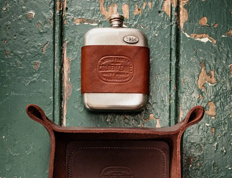 Cast By The English Pewter Co. In Sheffield And Wrapped Using Our Vintage Leather, Hand-Stitched In The Colsenkeane Workshop, This Is The Ideal Companion For The Weary Wanderer.