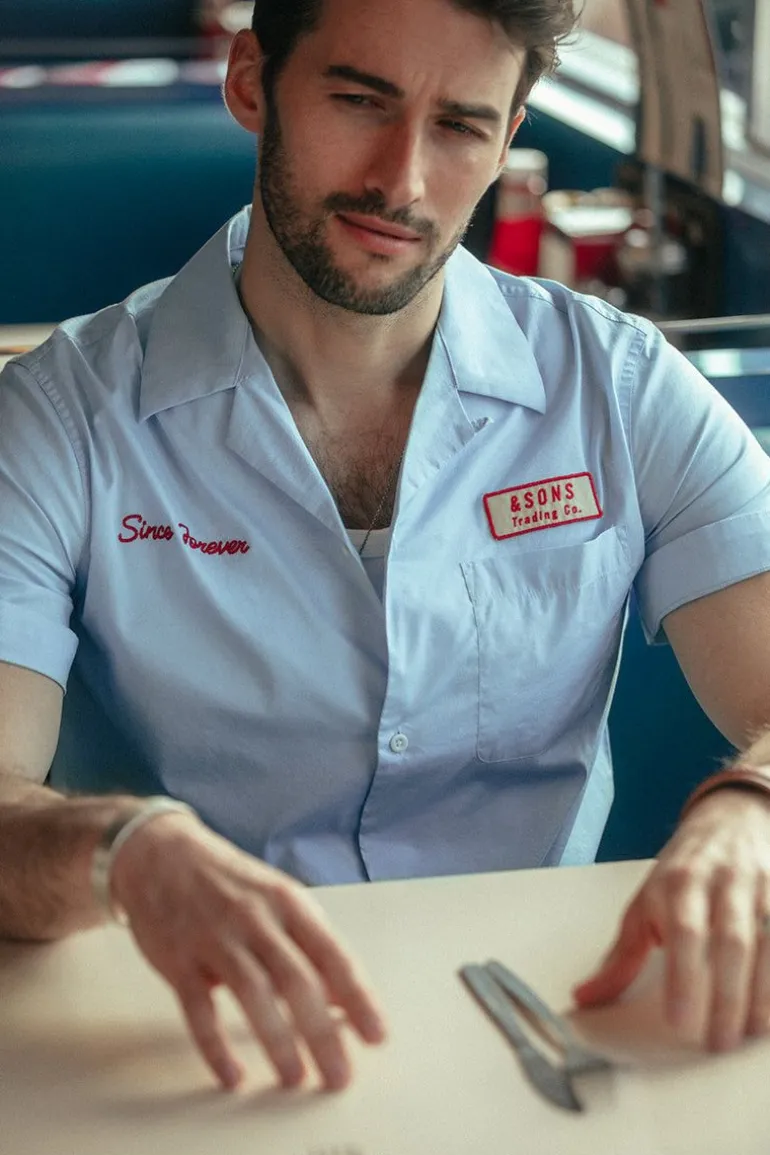 We Wanted To Create A Unique Version Of The Classic Club Design With An &Sons Twist. Introducing A Button To The Sleeve, Finished With A Clean Crisp V-Cut Hem. The Cuban Collar Provides The Wearer With A Flattering V Shape That Naturally Widens The Shoulders And Draws In The Waist Area. It Can Be Worn Unbuttoned Over A T Or Solo, As Well As Buttoned For A Sharper Style.