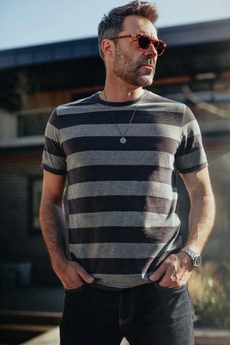 Embrace The Rugged And Effortlessly Cool Spirit With The Papillon T-Shirt, A Modern Twist On The Timeless Breton Stripe Shirt. Inspired By The Legendary Steve Mcqueen And His Iconic Character From The Classic Film “Papillon,” This Shirt Features A Wider Charcoal And Grey Marl Stripe Pattern. Crafted From A Premium Cotton Blend With A Slub Texture, This Shirt Combines Softness And Durability, Making It The Perfect Companion For Your Adventures.