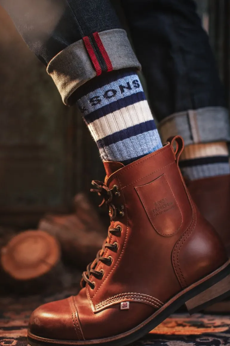 These Navy Striped Socks Will Get You Kicking In Style, With Ribbed Calves, Providing The Perfect Fit For Everyone.