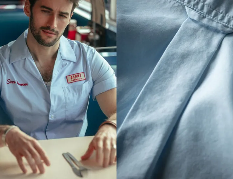 We Wanted To Create A Unique Version Of The Classic Club Design With An &Sons Twist. Introducing A Button To The Sleeve, Finished With A Clean Crisp V-Cut Hem. The Cuban Collar Provides The Wearer With A Flattering V Shape That Naturally Widens The Shoulders And Draws In The Waist Area. It Can Be Worn Unbuttoned Over A T Or Solo, As Well As Buttoned For A Sharper Style.